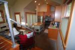 As Karen and her girlfriend Beverly Scott helped Martha design the ADU, they were inspired by ADUs they’d seen on the BIG Tour, small house websites, and their own imaginations. Beverly developed the initial design and they hired an architect to draft up the actual plans. The interior of the ADU is modern. If Portland did not require detached new-construction ADUs to match the primary dwelling, they probably would have made the ADU more modern, too, with a different roof pitch and a different window style.
