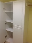 “The walls were covered in cheap paneling printed to look like wood. The toilet and shower weren’t enclosed and the shower was scuzzy. So I made a bathroom and a kitchen. I put in crown molding to make it blend in with the rest of the house.” – John Baker
