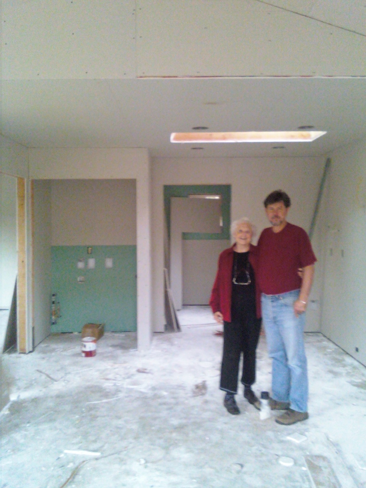 Shirley and builder Eric on drywalling day