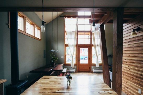 The kitchen is tucked below the loft