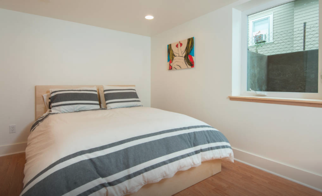Stephani and John are using their new property as they anticipated they would: they live in the primary dwelling and friends, family, and short-term renters stay in the basement ADU. John says that when family members or friends stay, they open the door that separates the ADU from the house to make it easier to interact. When renters stay, Stephanie and John become short-term property managers, sharing information about must-see sites in Portland. John says that he always felt the ADU project was moving in a good direction, but the biggest highlight was having their first short term renter tell them how much they loved the space.