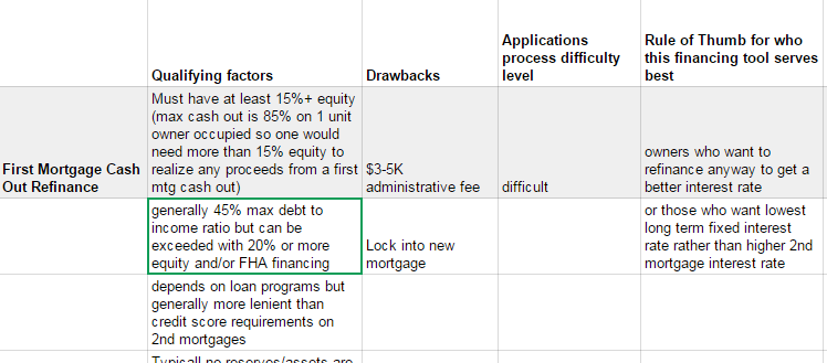 For further clarification of these three conventional loan types, we’ve built a reference spreadsheet that compares and contrasts each of these three options based on the factors are at play to qualify for the type of loan: