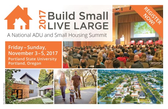 The Build Small Live Large Summit is the first ever national gathering of leaders in ADU policymaking, design and development. ADU industry practicioners across the country will convene to share and showcase emerging best practices regarding the development of this rare housing type. If you are an ADU enterprenuer, designer, builder, policy-maker, or advocate, we hope that you will be able to attend.