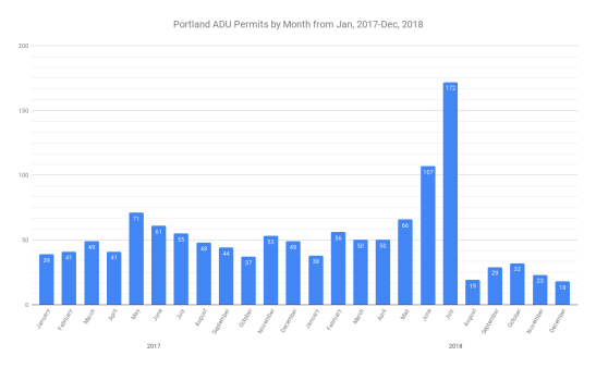This sudden drop was due to the end of the historically relevant ‘temporary SDC waiver’ incentive period that Portland had from 2010-2018. That period ended precisely and acutely on July 31st, 2018.