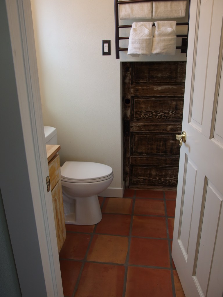 Universal design was a key criteria for Diane’s carriage house. They designed the stairs wide enough to have a chair lift go up them eventually. The shower is wide enough for a bench. Door handles are levers rather than knobs. Diane decided not to add all the grab bars for aesthetics, but the blocking is in the walls so that they can be added as necessary.