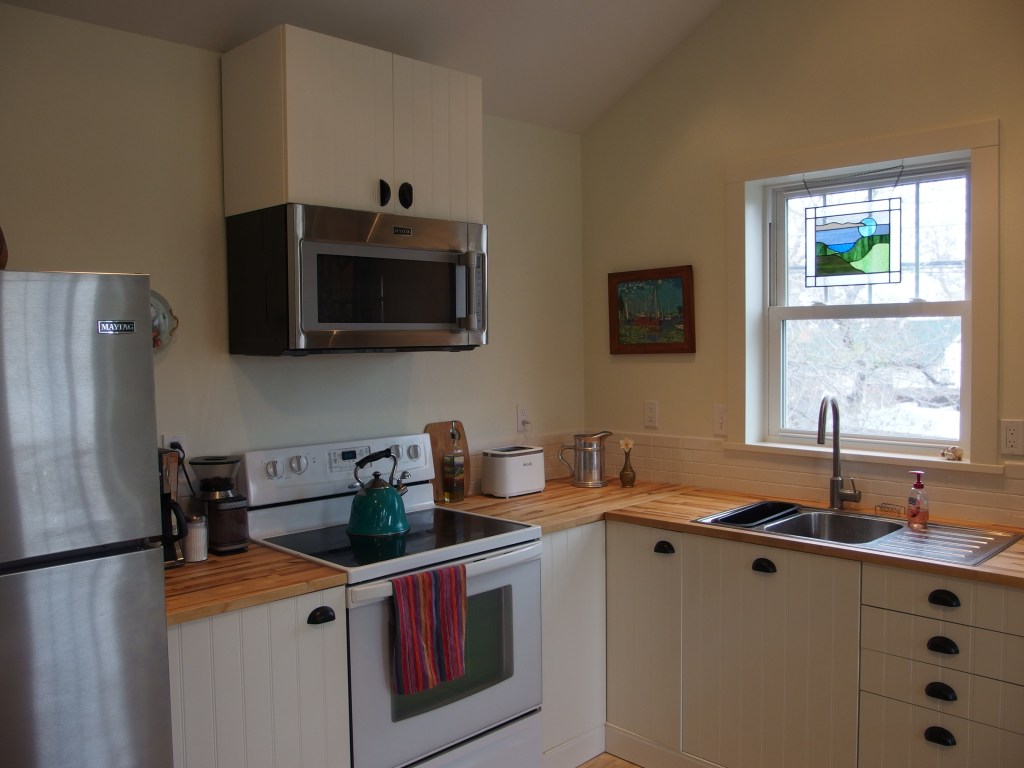 Diane and Mara were also mindful about including several sustainability features. They used an energy-efficient mini-split heat pump for both hot and cool air and installed an on-demand water heater. The carriage house is all electric, with no gas appliances or furnace. It is also solar ready; when the family has saved up for solar panels, they can have an array installed.
