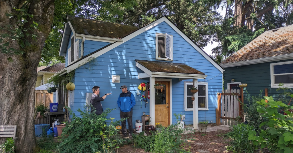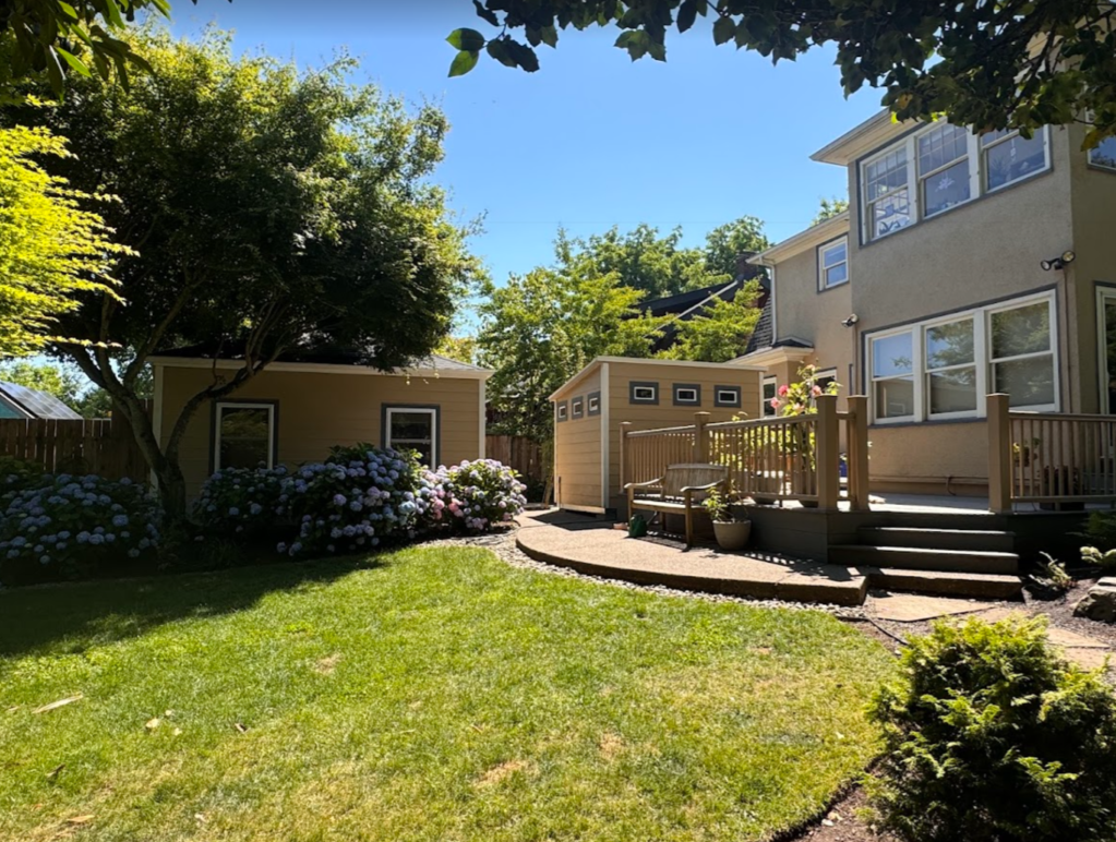 Tour organizer note: This property is classified as a cottage cluster. While not ADUs, they are another option for building small detached cottages properties in Oregon under House Bill 2001. They are another housing type to consider on larger lots. This lot is 8,000 sq ft and has five detached units. Cottage clusters requires far more capital and development knowhow than an ADU, so they will be built by professional developers rather than by amateur developers. These will be sold as detached condos.