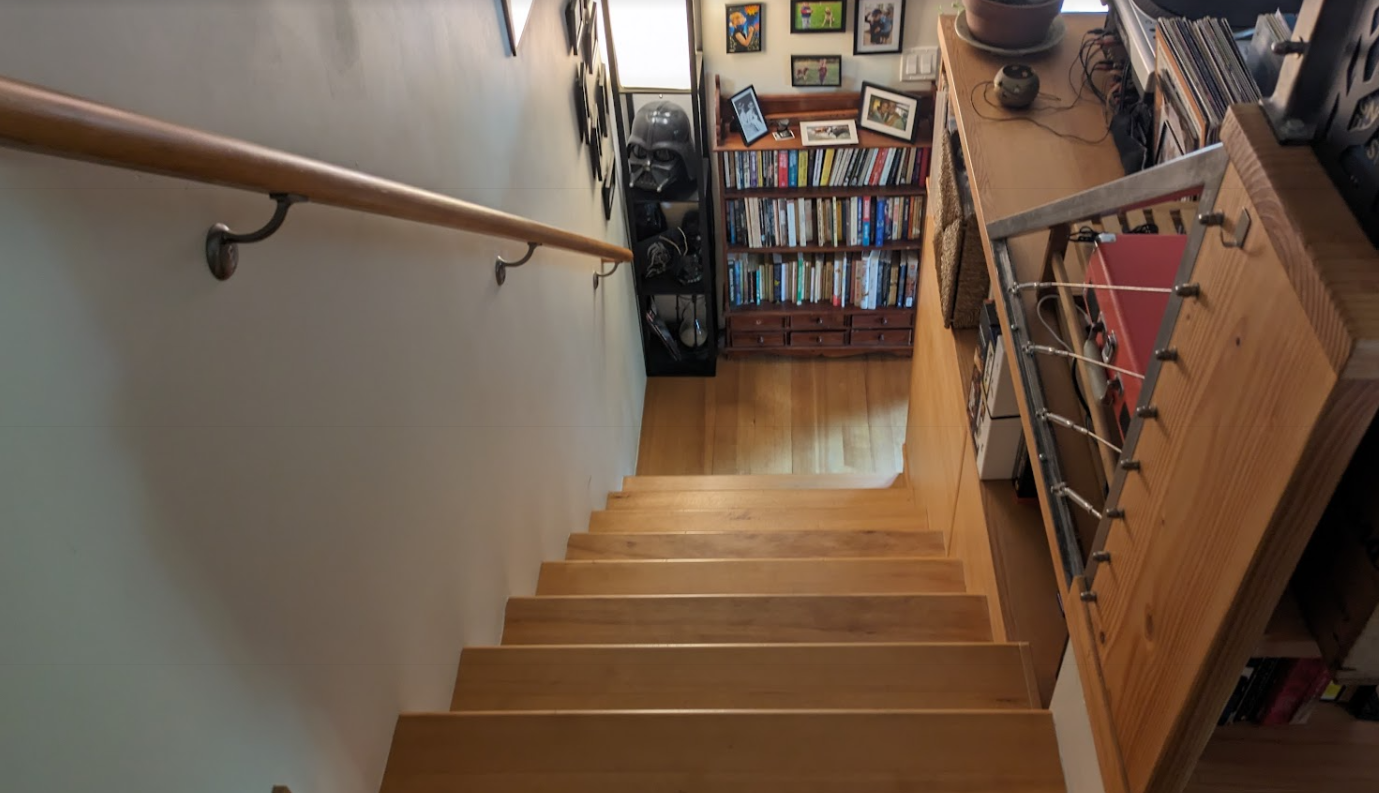 We really love the whole place. The desk downstairs and the railing and shelving upstairs are great. Even small things, like the pull out drawer above the stove for oils and spices is a really nice touch.