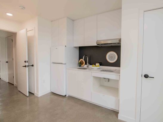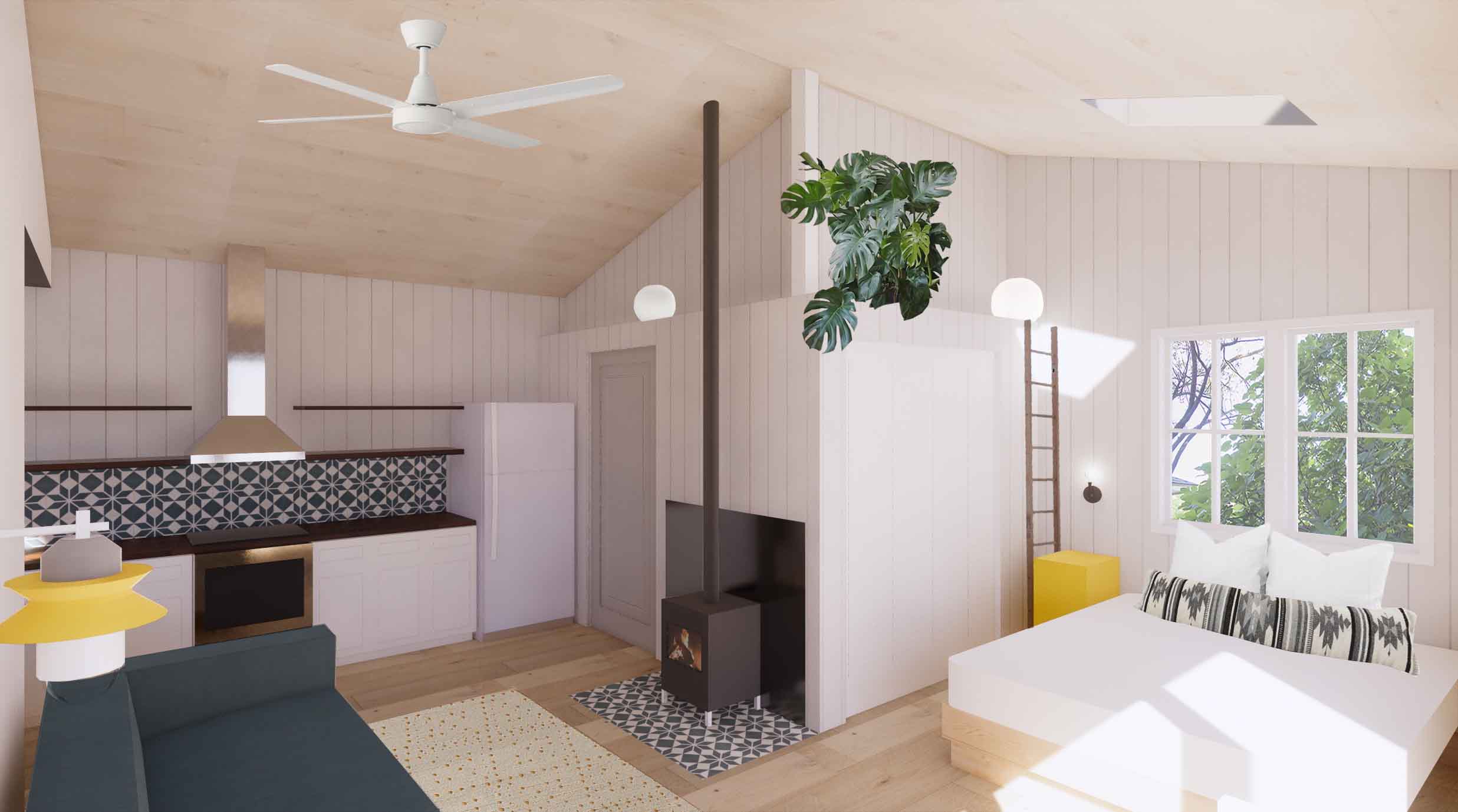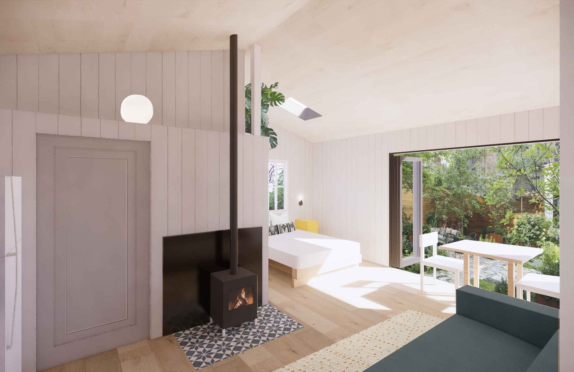 The size and design of the kitchen that maximizes the living space. The floor to ceiling windows around the corner of the ADU make it a light bright space to live in and the fact we were able to get a closet into the space.