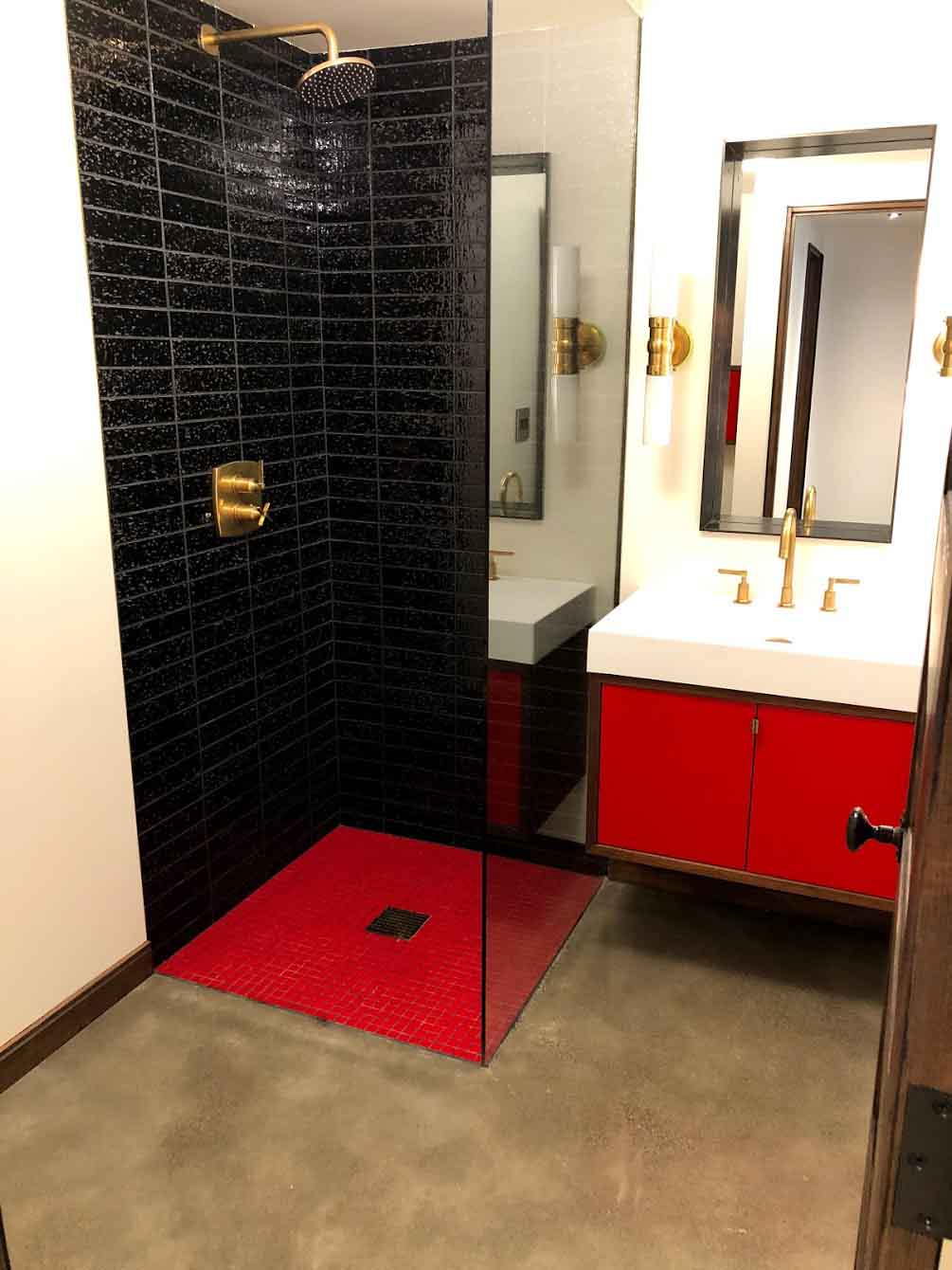 I’m proud that I was able to GC the build in under a year without making too many mistakes for my first build. We love the way the window wall and exterior cedar and aluminum slat sliders interface with neighborhood life while retaining some privacy for guests in the ADU living area. Using manufacturing waste (richlite from my iphone case business) to tile the bathroom 😀