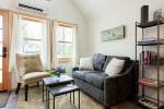 I love the dual levels of the main floor and the high ceilings which add a sense that it’s much larger than it actually is. Playing with finishes to create a design that I think of as rustic elegance or Urban Barn, as we call it, allowed it to turn out as envisioned. We incorporated stain into the concrete before pouring the floors and they came out almost like marble, which I love. (Our first ADU had stain applied on top and it hasn’t held up well.) Lastly, I designed the fence and landscaping and I love how it ties the original house to the barn with clean lines and privacy for both.