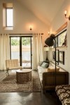 The high ceilings and many windows is what gives this relatively small home a big feel. The rustic style patio covers and the choice of stone and wood for finishing products brings a great feeling to the atmosphere of the place.